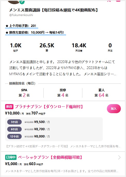 myfans博主メンエス覆面講師@fukumenkoushi原档4K付费订阅合集549V/791G